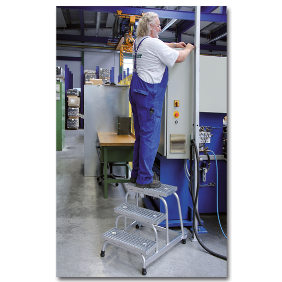 Arbeitspodest starr Stahl-Gitterrost mit Rollen